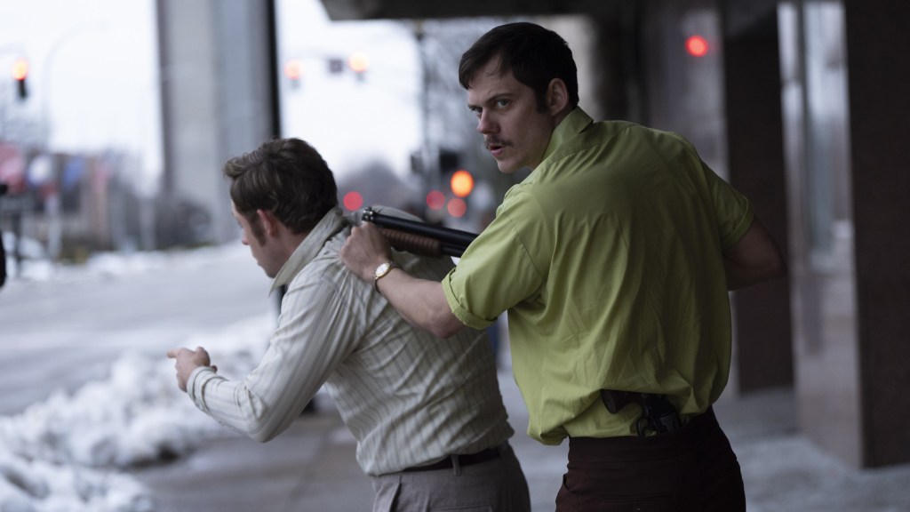The echoes to Dog Day Afternoon – which coincidentally opened two years before the year this film is set in – are obvious, and not just in Pacino’s casting as a figure very far away from Sonny Wortzik. Kiritsis – the Sonny in this situation, speaking of – is vividly portrayed by Skarsgård, in a performance that’s simultaneously sympathetic and menacing; so much so that it almost doesn’t matter that he doesn’t look very much like the real guy himself. The same can be said for Montgomery, whose subdued, lanky portrayal of Hall further sheds the heartthrob persona he cultivated early on in his career.